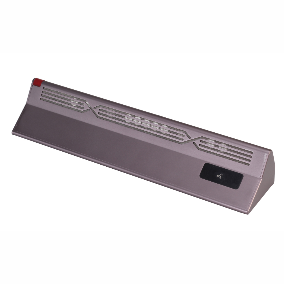 產品介紹: 采用最新陣列音頻處理技術,話筒使用八芯線與會議主機相連接,單臺主機最多可以連接90個會議單元,通過會議主機,實現工作模式控制,發言管理等討論型會議系統功能。無鵝頸設計,采用自主開發的陣列式麥克風適應技術。拾音距離遠指向性好,寬帶式拾音,最佳拾音距離可達1米。觸摸控制開關,方便開啟和關閉話筒。外殼采用一體成型和數控機床精確加工技術,外觀高端大氣。 產品特性:(帶★號的是本產品控標點) ★采用本公司最新數字麥克風陣列技術,無咪桿設計,建立屬于自己的拾音通道和范圍, 無論誰在演講,聲壓級不變; ◆最佳拾音距離為80CM以上,話筒可以隨意擺放,即使在離桌子邊較遠的距離; ◆超大觸摸靜音開關設計; ◆全新的觸摸操控技術,2.2英寸的OLED屏幕; ◆對有效拾音范圍靈敏度的精確控制,有效提升系統的傳聲增益 ★內置13個9.7鍍金麥克風,并設計有兩個環境噪聲拾取麥克風,最大的保證高質量的拾取語音,抑制環境噪聲, ◆同時兼顧模擬電容聲音品質和陣列定向收音特性; ◆可以接入任何模擬處器系統(數字自動混音系統、數字音頻處理器、調音臺等),快速搭建高品質數字陣列會議系統; ◆支持視像跟蹤 ◆可以支持軟件,并可以通過232接口與其他中央控制設備連接,實現集中控制 ★無鵝頸設計方式,演講者和與會者可以進行無阻礙溝通,演講者也具有更好的視 覺效果; ◆更大更遠的拾音范圍,演講者再也不用在乎話筒在哪,具有更大的活動空間; ★支持網線或8芯線傳輸,(網線需要專用連接盒) ◆主席話筒具有主席優先鍵功能,可以關閉正在發言的代表單元。 ★支持主線環形連接,手拉手話筒主線出現中間斷開,并不會影響使用, ◆超強的抗手機RF干擾性 ★按鍵燈支持三色顯示,紅色表示正在發言,綠色表示表示正在優先,黃色表示故障, ◆支持多支主席同時在線. ◆長距離傳輸對音質不會有任何影響. ◆“線形手拉手”連接,系統連接更方便,更可靠, ★內部自帶靈敏度調節,單獨對任意一只話筒進行靈敏度調節,保證會議室系統的最大音頻輸出增益, ◆獨有創新的自我檢測功能,配合軟件,可自動完成設備自檢,讓會議前準備測試工作更簡單,會議進行更可靠 ◆桌面式流線設計,全鋁外殼,一次加工成型,時尚、典雅,彰顯高貴、莊重氣質。 ★話筒防水級IPV5,