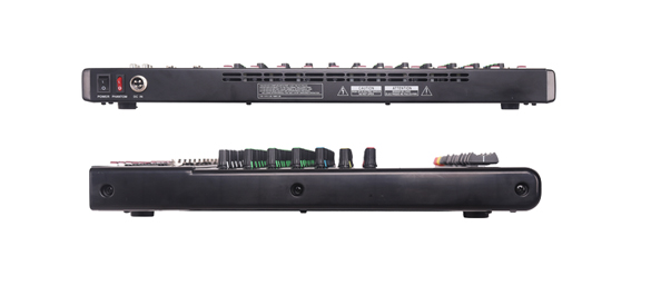 配有XLR和LINE可切換輸入全部通道設有3段EQ設有附加效果處理的插入點一條AUX輔助主線輸出內置數碼延時混音效果器提供可切換的+48V幻像電源平衡/不平衡錄音及回放連接器,兩路單聲道,兩個立體聲輸入. 三段均衡 內置混音效果