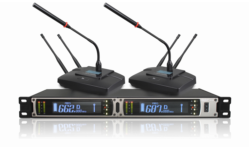 發射器技術參數: 手持麥克風內置螺旋天線,腰掛發射器采用1/4波長鞭狀天線 輸出功率:高功率100mW, 低功率: 30mW 拾音頭: 動圈式 雜散抑制: -60dB 供電量: 兩節5號AA堿性電池