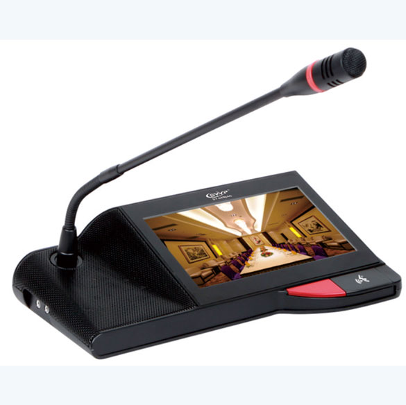 ■所有發言設備都可通過系統設置菜單:調節本機的音量、LCD亮度。 ■麥克風具有發言開關可控制發言狀態。使用FPGA作為核心CPU。 ■具有強制切斷列席麥克風發言的優先功能,具有攝像機自動跟蹤功能。 ■臺面可移動式、可拔插咪管。 限制發言數量可選。 ■單元由系統主機供電。輸入電壓為DC24V,屬于安全范圍。 ■麥克風網頭具有環形紅色光環,可顯示麥克風發言狀態。 ■單元具有8P-DIN插座用于系統連接。 ■內置高保真揚聲器及外接耳機插孔。 ■可繞式電容麥克風,并配可更換式防風罩。 ■采用全新數控化設計。 ■可以發言與聆聽。 ■話筒桿具有加長型可供選擇。 ■麥克風具有發言開可控制發言狀態。■頻率響應: 80Hz~16kHz ■ 靈敏度: -44dB±2dB ■ 參考講話距離: 15cm~50cm ■咪桿長度: 390mm ■ 顯示屏:7” TFT 16:9 ■ 分辨率:800*480 ■色 彩:262K