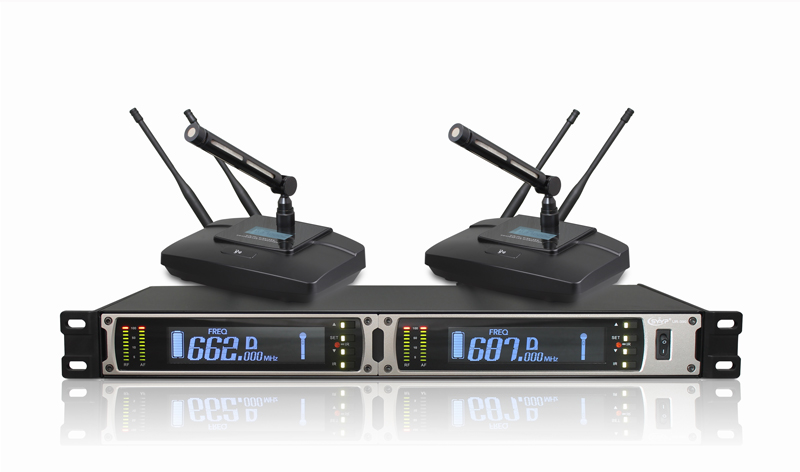 發射器技術參數: 手持麥克風內置螺旋天線,腰掛發射器采用1/4波長鞭狀天線 輸出功率:高功率100mW, 低功率: 30mW 拾音頭: 動圈式 雜散抑制: -60dB 供電量: 兩節5號AA堿性電池
